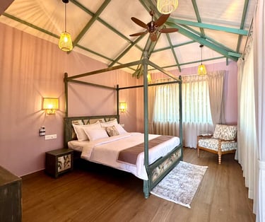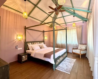 A serene 4-bedroom villa nestled in lush greenery, minutes from Colva Beach.